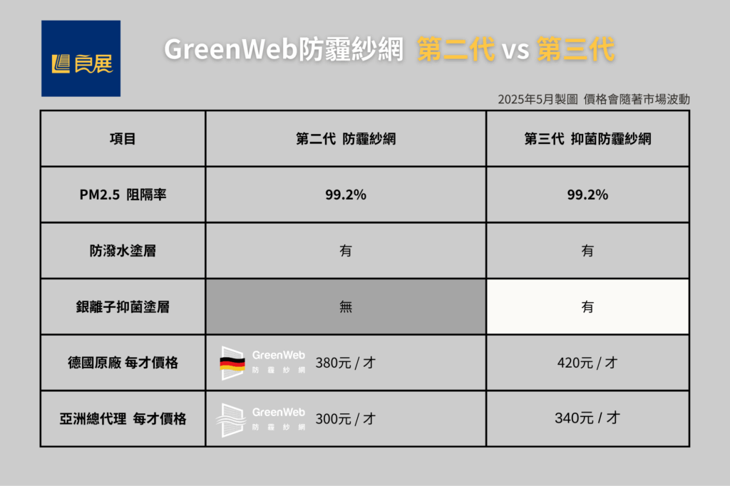 防霾紗窗品牌推薦|GreenWeb 第二代 vs 第三代差異